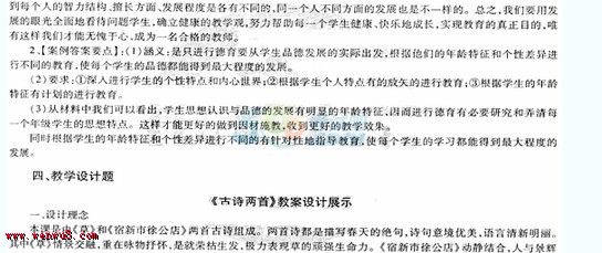 1、【案例答案要點】:本題考查新課程改革的內(nèi)容:開放與生成的教學(xué)觀