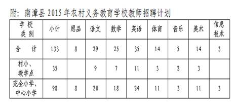 2015年南漳縣招錄133名農(nóng)村義務(wù)教育學(xué)校教師。