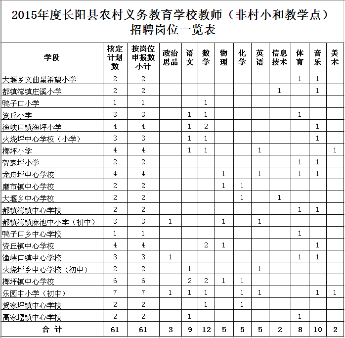2015年度長陽縣農(nóng)村義務(wù)教育學(xué)校教師招聘崗位匯一覽表