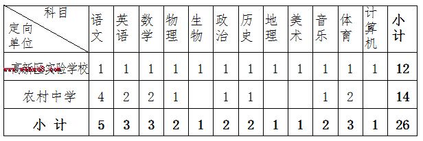 說明:全部定向安排到高新區(qū)實(shí)驗(yàn)學(xué);蚱仪版(zhèn)、高埔崗農(nóng)場所轄農(nóng)村中小學(xué)工作,須在定向招聘單位服務(wù)5年以上方可申請調(diào)動。