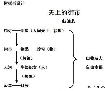所謂想象,就是在原有情感形象的基礎(chǔ)上創(chuàng)作出新形象的心理過程。這些新形象是已積累的知覺經(jīng)過加工改造而形成的。如詩中由“天上的街市”想到“牛郎織女的自由生活”是想象。