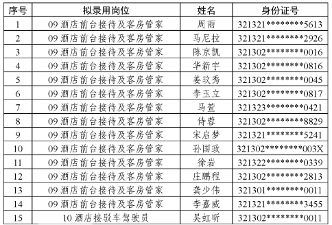 根據(jù)宿遷文化旅游發(fā)展集團(tuán)有限公司招聘公告(2023年7月3日)規(guī)定,現(xiàn)將擬錄用人員名單予以公示(第一批)。公示期:2023年7月21日-27日。