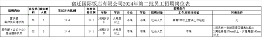 招聘崗位及相關(guān)要求等內(nèi)容,詳見附件《宿遷國際飯店有限公司2024年第二批員工招聘崗位表》(以下簡(jiǎn)稱《崗位表》)。