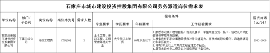 根據(jù)工作需要,石家莊市城市建設(shè)投資控股集團(tuán)有限公司特委托石家莊市國經(jīng)人力資源管理有限公司面向社會(huì)公開招聘勞務(wù)派遣制人員3名,F(xiàn)將具體招聘流程設(shè)定如下: