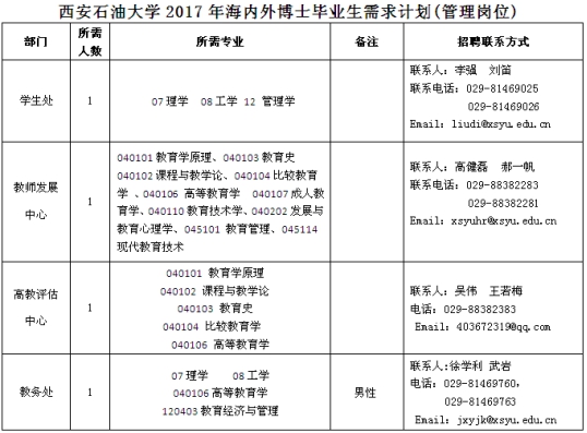 聯(lián)系地址:西安市雁塔區(qū)電子二路東段18號 西安石油大學(xué)人事處