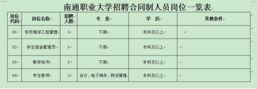 南通職業(yè)大學(xué)2017年合同制人員招聘公告
