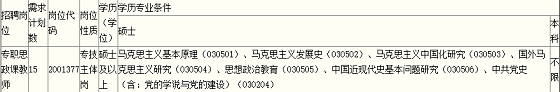 本次專職思政課教師招聘計劃為15人,全部納入學(xué)校正式事業(yè)編制,具體崗位計劃如下: