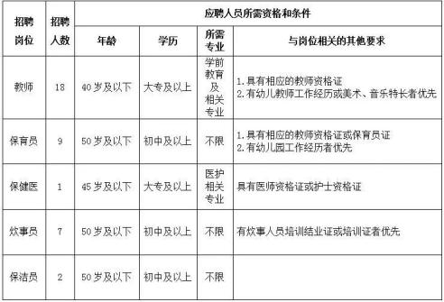 6、有其他不適于在幼兒園從業(yè)記錄或其他不符合招聘資格條件的。