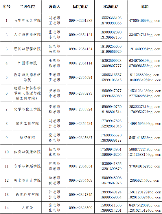 九、人事處及二級學院咨詢人及聯系方式