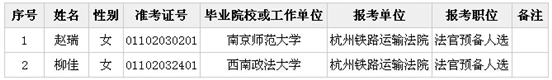 2015年杭州市考試錄用公務員考察公示名單(市鐵路法院)