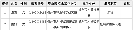 2015年杭州市考試錄用公務(wù)員考察公示名單(市檢察院)