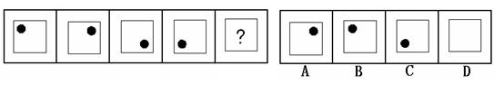 (答案:B。黑點在正方形中順時針移動。在第5個圖形中,應(yīng)該正好移動到左上角。)