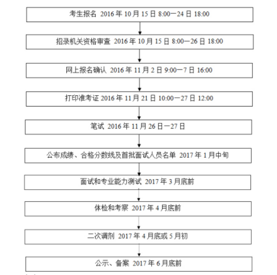 中央機關(guān)及其直屬機構(gòu)2017年度考試錄用公務(wù)員工作時間安排