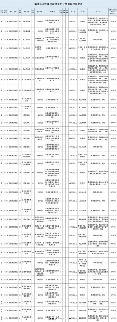注:本次招錄的報名、資格初審和繳費,通過網(wǎng)絡方式進行。報考者可以登錄無錫市委組織部網(wǎng)站(zzb.wuxi.gov.cn)查詢無錫市考錄簡章、報考指南、職位簡介表以及咨詢電話等信息。