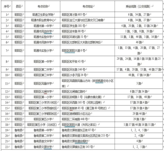 附件1:云南省2023年度考試錄用公務(wù)員昭通考區(qū)筆試考點(diǎn)地址及乘車路線