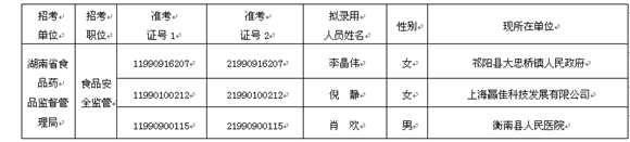 湖南省食品藥品監(jiān)督管理局2014年考試錄用公務(wù)員擬錄用人員名單公示