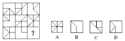 第一種題型:圖形推理。每道題給出一套或兩套圖形,要求報(bào)考者認(rèn)真觀察找出圖形排列的規(guī)律,選出符合規(guī)律的一項(xiàng)。