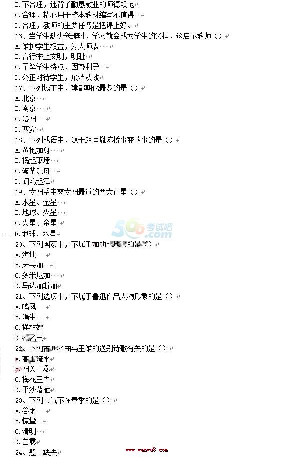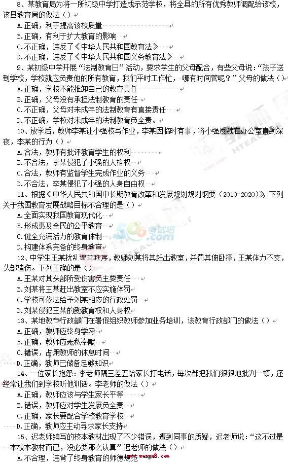 您現(xiàn)在的位置:首頁 >> 教師資格證考試真題 >> 中學綜合素質(zhì)真題 >> 內(nèi)容