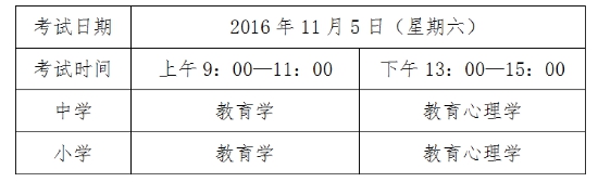 2.全國(guó)中小學(xué)教師資格考試日期為2016年11月5日。