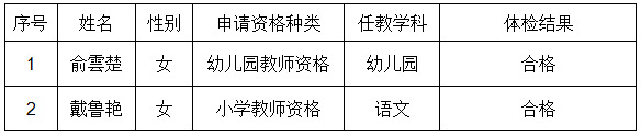浙江省寧波市鎮(zhèn)海區(qū)2016年下半年教師資格認(rèn)定第三次體檢結(jié)果公告