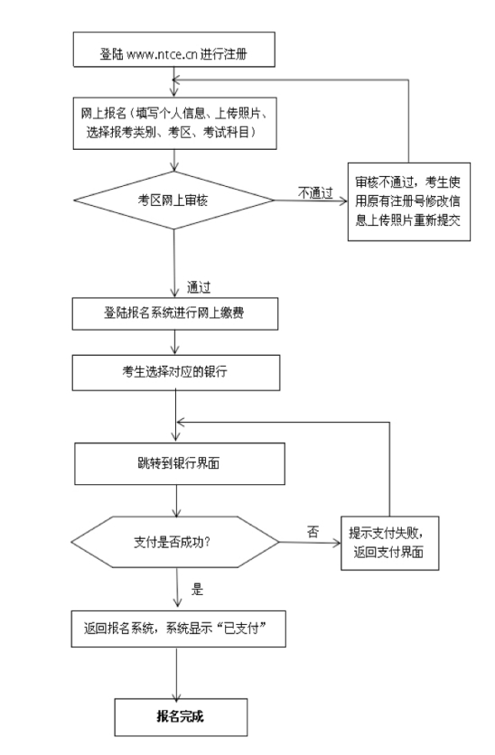 2.中小學(xué)教師資格考試網(wǎng)上報(bào)名及繳費(fèi)流程圖