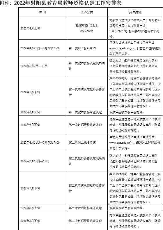 根據(jù)《教師法》《教師資格條例》《<教師資格條例>實施辦法》規(guī)定和省教育廳部署要求,現(xiàn)就2022年射陽縣面向社會認定中小學(xué)教師資格有關(guān)事項公告如下。