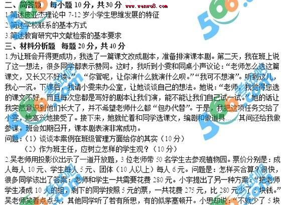 2014下半年教師資格證統(tǒng)考《小學(xué)教育教學(xué)知識(shí)與能力》真題完整版