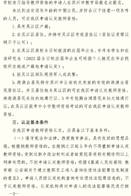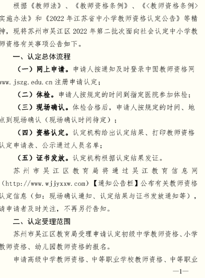 2022年江蘇蘇州市吳江區(qū)第二批次中小學(xué)教師資格認(rèn)定公告