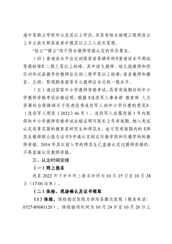 2022年下半年宿遷泗陽縣中小學(xué)教師資格認(rèn)定公告