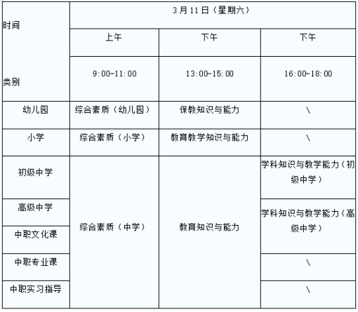 (四)全國(guó)統(tǒng)一考試時(shí)間為3月11日,各類別考試科目與時(shí)間安排如下: