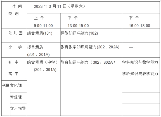 (一)初中、高中、中職文化課類別的“心理健康教育”、“日語”、“俄語”專業(yè),筆試科目為初、高中《綜合素質(zhì)》(代碼:301)和《教育知識與能力》(代碼:302),以上科目的學科知識與教學能力暫不進行筆試,在面試時一并考核。