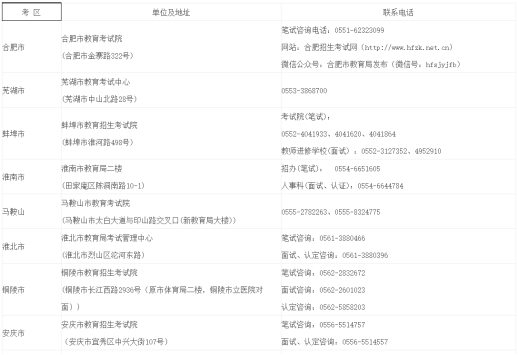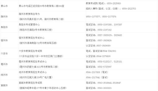 安徽省2023年下半年中小學(xué)教師資格考試筆試報名網(wǎng)上審核各市聯(lián)系方式