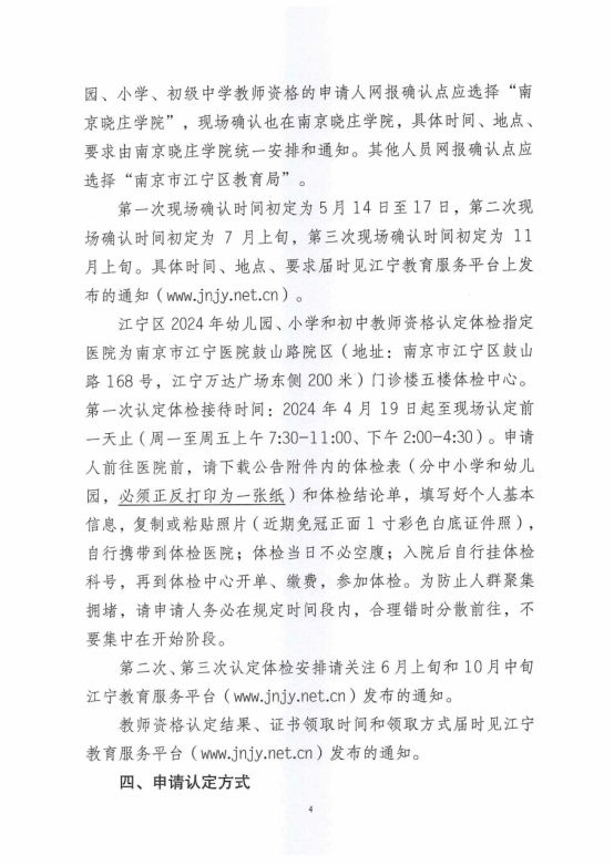2024年南京市江寧區(qū)幼兒園、小學(xué)、初中教師資格認(rèn)定公告