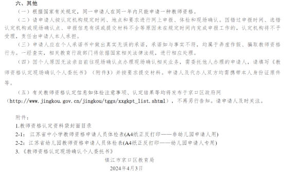 2024年鎮(zhèn)江市京口區(qū)中小學(xué)教師資格認(rèn)定公告