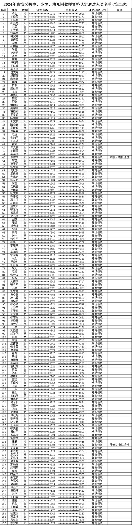 附件:《2024年秦淮區(qū)初中、小學(xué)、幼兒園教師資格認(rèn)定通過(guò)人員名單(第二次)》