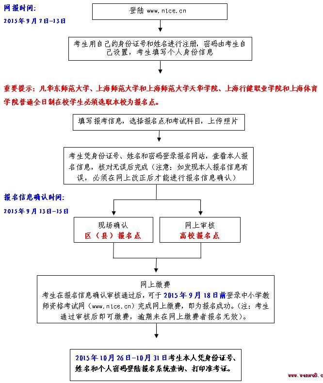 (七)2015年下半年面試報(bào)名時(shí)間預(yù)計(jì)為11月30日-12月4日。面試具體公告信息請(qǐng)于筆試成績(jī)公布后登錄中小學(xué)教師資格考試網(wǎng)(www.ntce.cn)及上海市教育人才交流服務(wù)中心網(wǎng)站(www.shehr.cn)查詢。