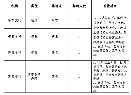 重慶三峽銀行股份有限公司是經(jīng)中國銀監(jiān)會批準(zhǔn),設(shè)立在重慶直轄市的股份制商業(yè)銀行。成立以來,各項(xiàng)業(yè)務(wù)迅速發(fā)展,經(jīng)營穩(wěn)健。截止2014年末,在全市擁有營業(yè)網(wǎng)點(diǎn)67個(gè),全行資產(chǎn)總額突破1000億元,各項(xiàng)存款余額679億元,各項(xiàng)貸款余額268億元,利潤總額17.6億元。因發(fā)展需要,現(xiàn)招聘支行柜員、客戶經(jīng)理數(shù)名,我們誠邀有志有識之士,共創(chuàng)輝煌的明天!