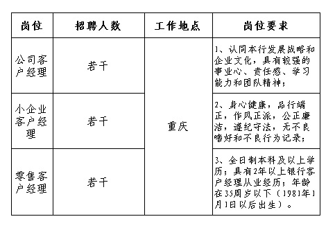 重慶三峽銀行客戶經(jīng)理招聘啟事