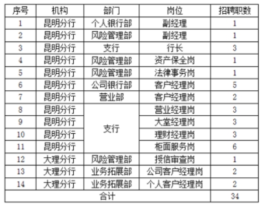 2017年云南紅塔銀行昆明分行、大理分行機(jī)構(gòu)人員招聘公告