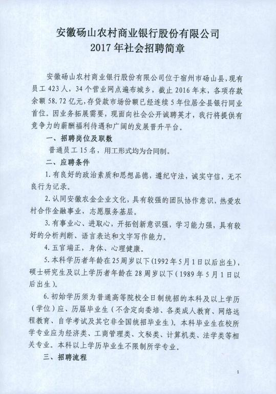 2017年碭山農(nóng)商銀行社會(huì)招聘簡(jiǎn)章