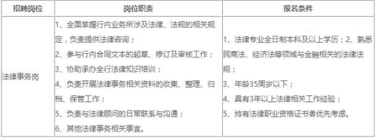 2017年龍灣農商銀行法律事務崗招聘啟事