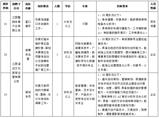 江陰文化商業(yè)旅游產(chǎn)業(yè)集團(tuán)有限公司成立于2023年6月27日,注冊地位于江陰市君巫路100號,為市屬國有企業(yè),承擔(dān)我市文化、體育、旅游資源綜合開發(fā)和商業(yè)運(yùn)營功能,致力于打造成為有較完整產(chǎn)業(yè)鏈,較強(qiáng)競爭力和影響力的綜合性產(chǎn)業(yè)集團(tuán)。因業(yè)務(wù)需要現(xiàn)決定面向社會公開招聘工作人員3名,現(xiàn)將有關(guān)事項公布如下:
