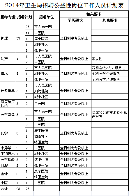 1、2014年衛(wèi)生局招聘公益性崗位工作人員計劃表.xls