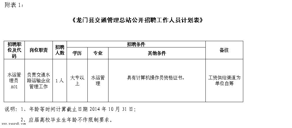 附表: 1、《龍門縣交通管理總站公開招聘工作人員計劃表》;