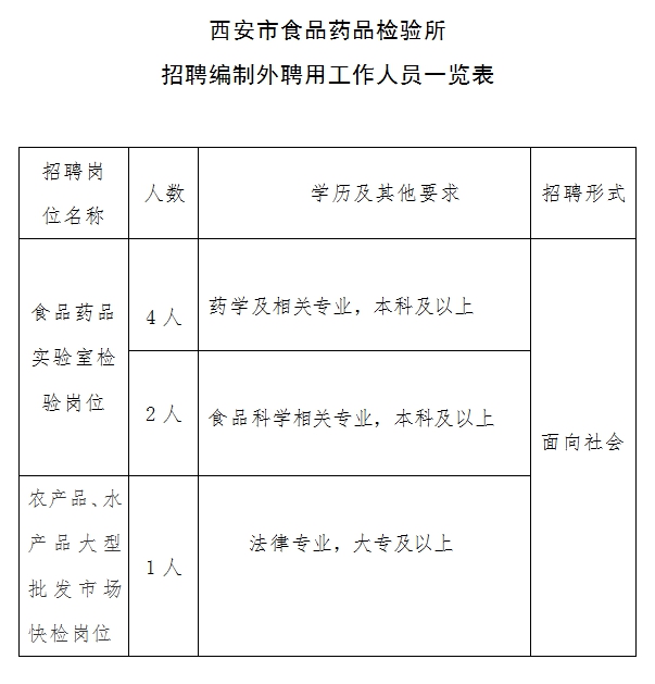 西安市食品藥品檢驗(yàn)所招聘編制外聘用工作人員方案