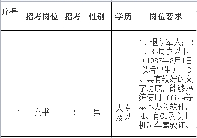 因人武部工作需要,決定面向社會(huì)公開招聘編外工作人員2名,現(xiàn)將有關(guān)事項(xiàng)公告如下: