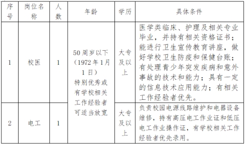 校醫(yī)1人、電工1人