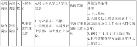 因工作需要,寧波市人民政府公報(bào)室擬面向全市公開(kāi)選聘事業(yè)編制人員1名,F(xiàn)將有關(guān)事項(xiàng)公告如下: