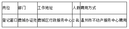 因工作需要,溫州市不動產(chǎn)登記服務(wù)中心招聘編外工作人2名,現(xiàn)將有關(guān)事宜告知如下:
