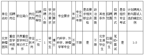 北京腫瘤醫(yī)院(北京大學腫瘤醫(yī)院、北京大學臨床腫瘤學院、北京市腫瘤防治研究所)始建于1976年,是集醫(yī)、教、研、防于一體的大型現(xiàn)代化三級甲等腫瘤?漆t(yī)院。根據(jù)《北京市事業(yè)單位公開招聘工作人員實施辦法》(京人社專技發(fā)[2010]102號)及《關(guān)于進一步規(guī)范事業(yè)單位公開招聘有關(guān)問題的通知》(京人社專技發(fā)[2012]247號)規(guī)定,結(jié)合我院工作,現(xiàn)將我院2023年正式編制崗位公開招聘事宜公告如下: